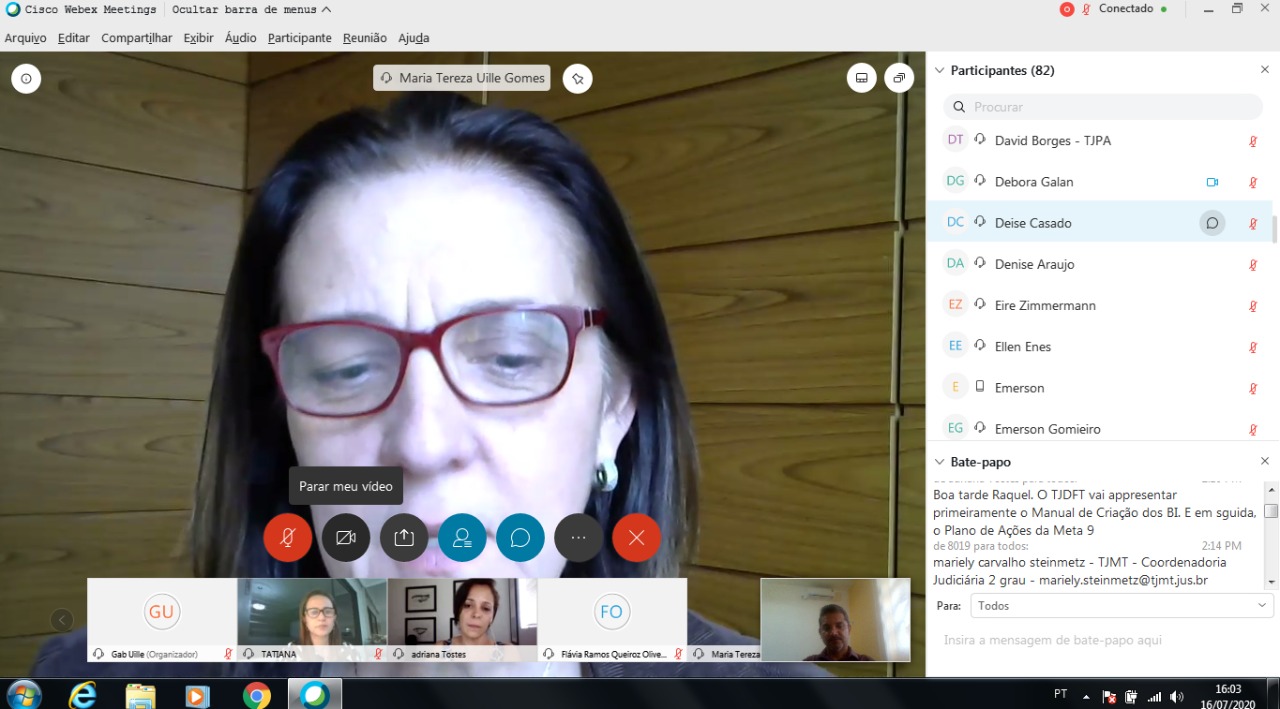 Conselheira Maria Tereza Uille Gomes debateu as ações do plano durante videoconferência.