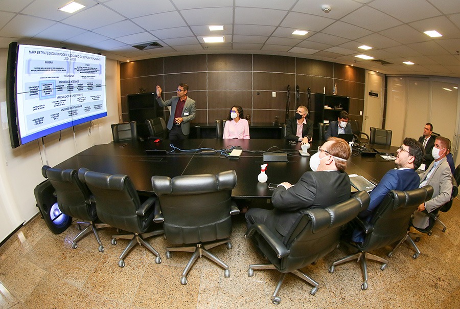 O Tribunal de Justiça de Alagoas (TJAL) realizou a primeira Reunião de Análise da Estratégia (RAE) do Comitê de Gestão Estratégica (CGE) em 2022, nesta quarta-feira (30). O encontro foi conduzido pelo presidente Klever Loureiro e o juiz auxiliar da Presidência Antônio Rafael Casado.